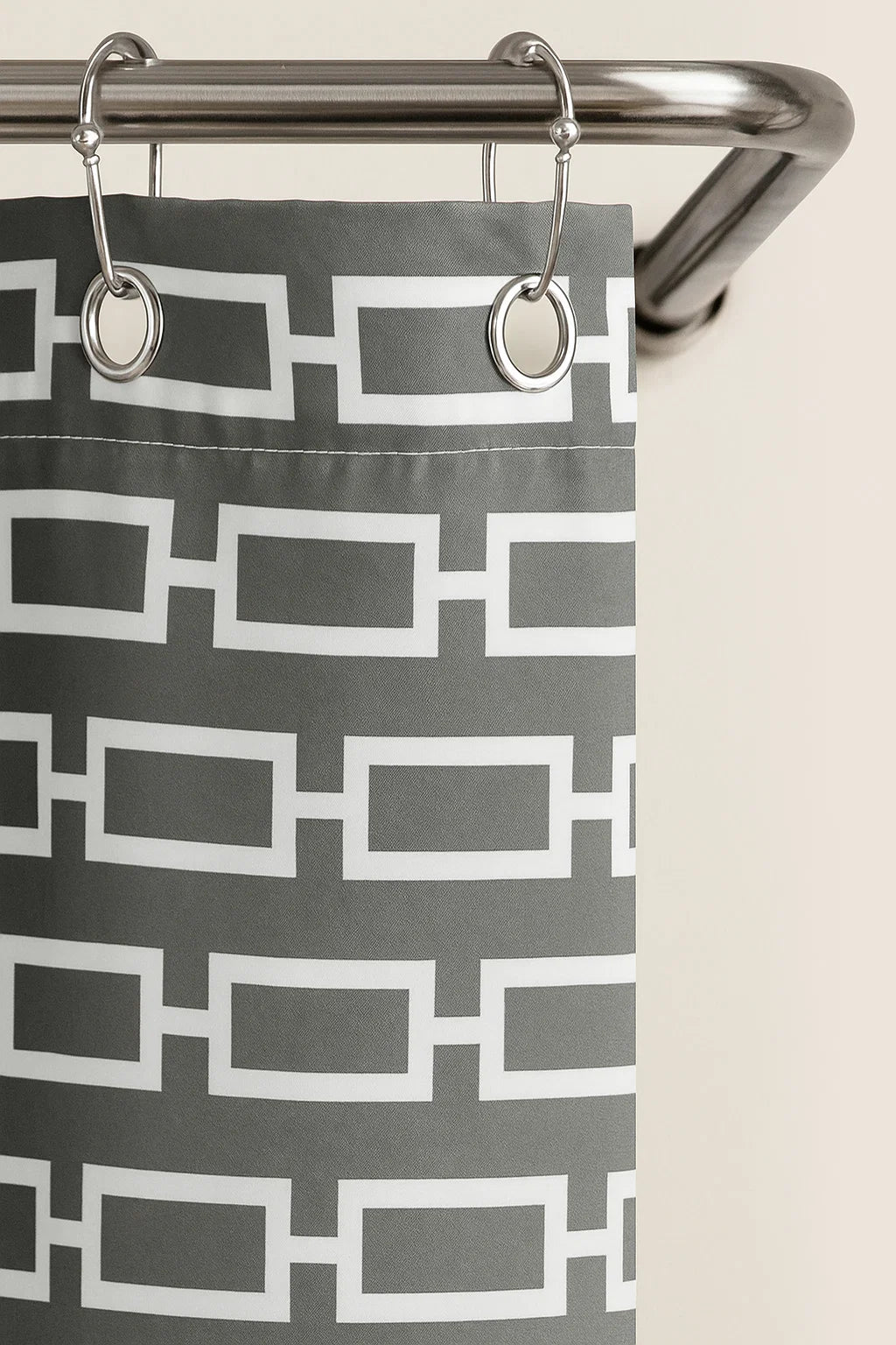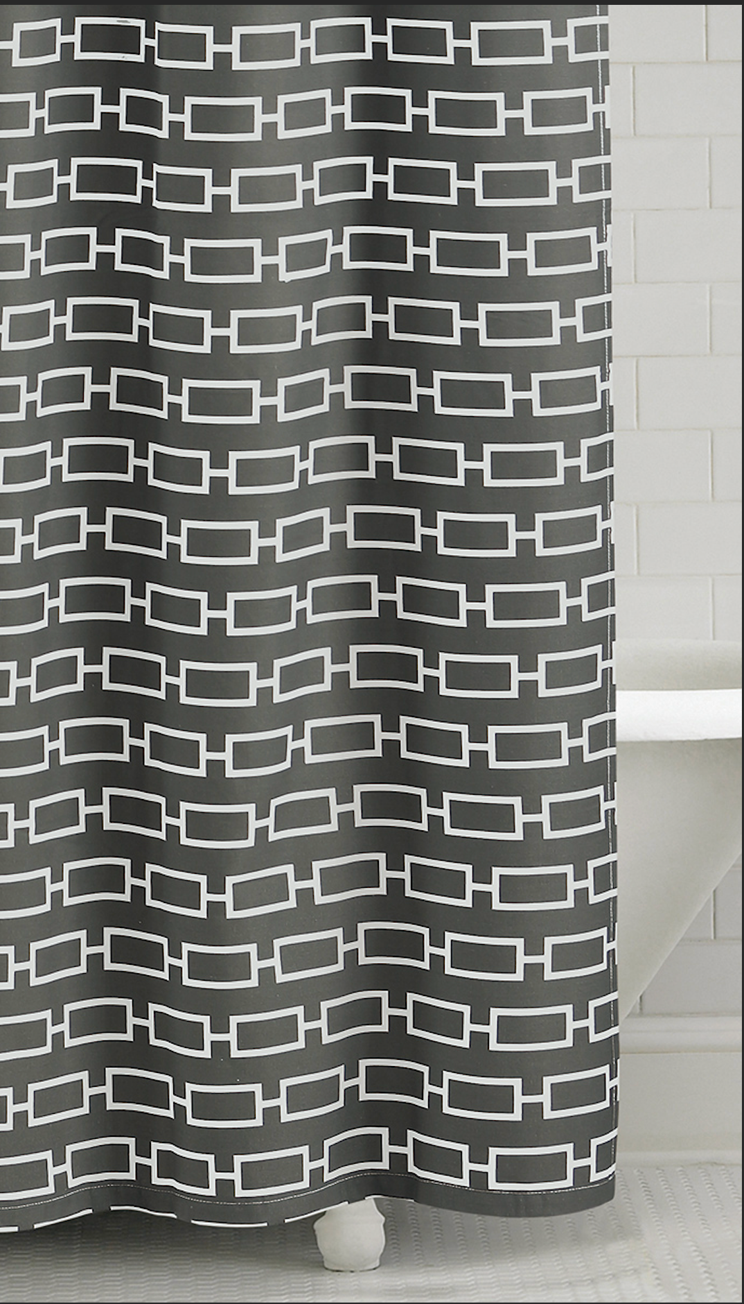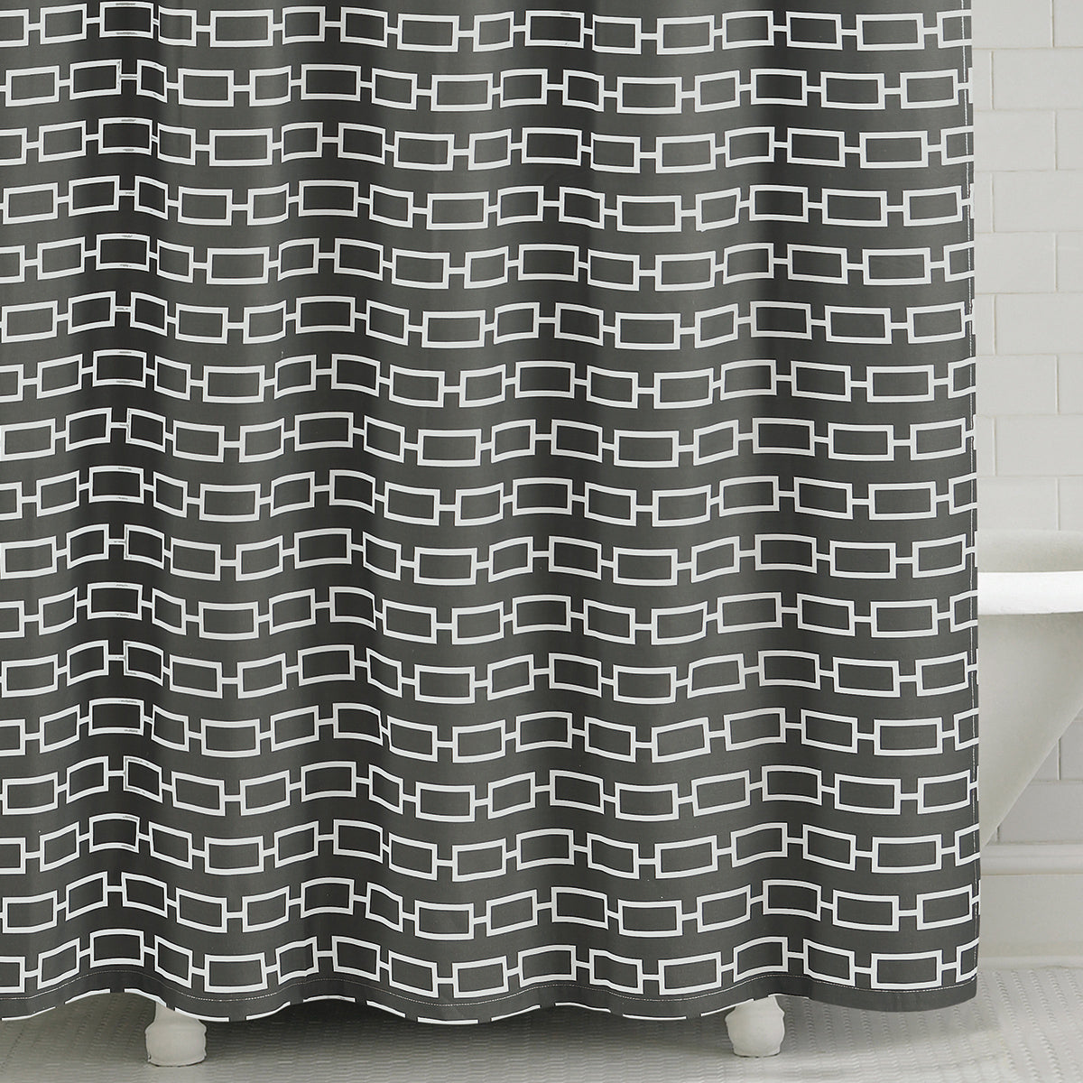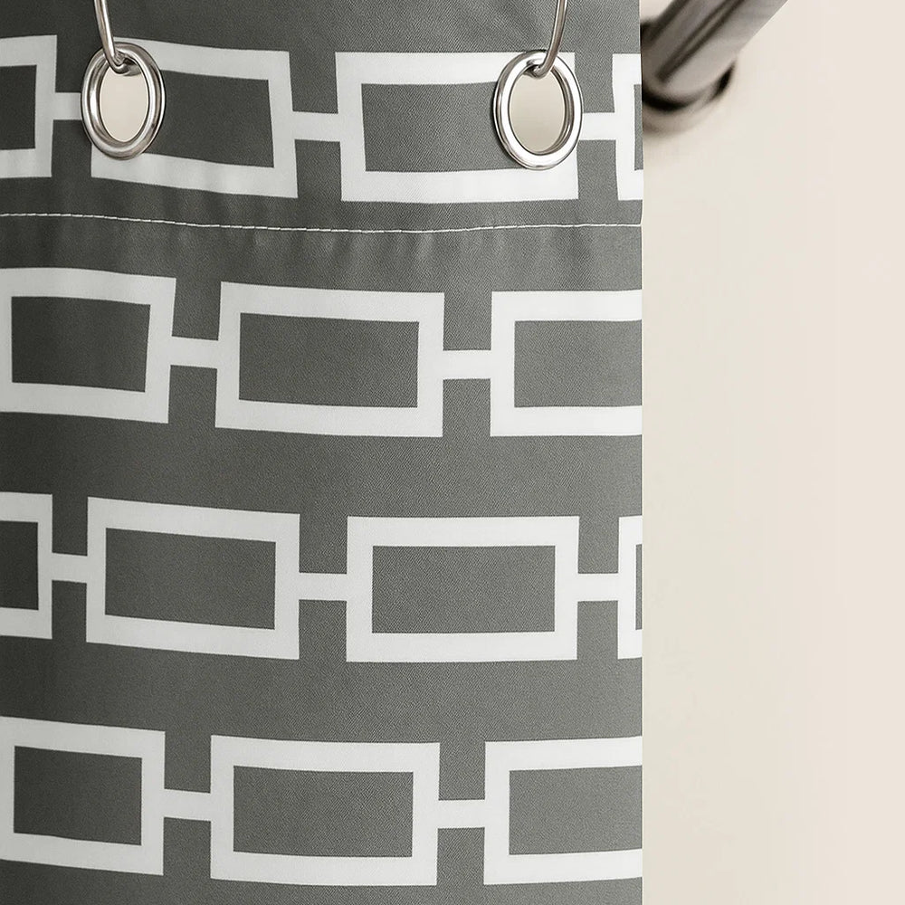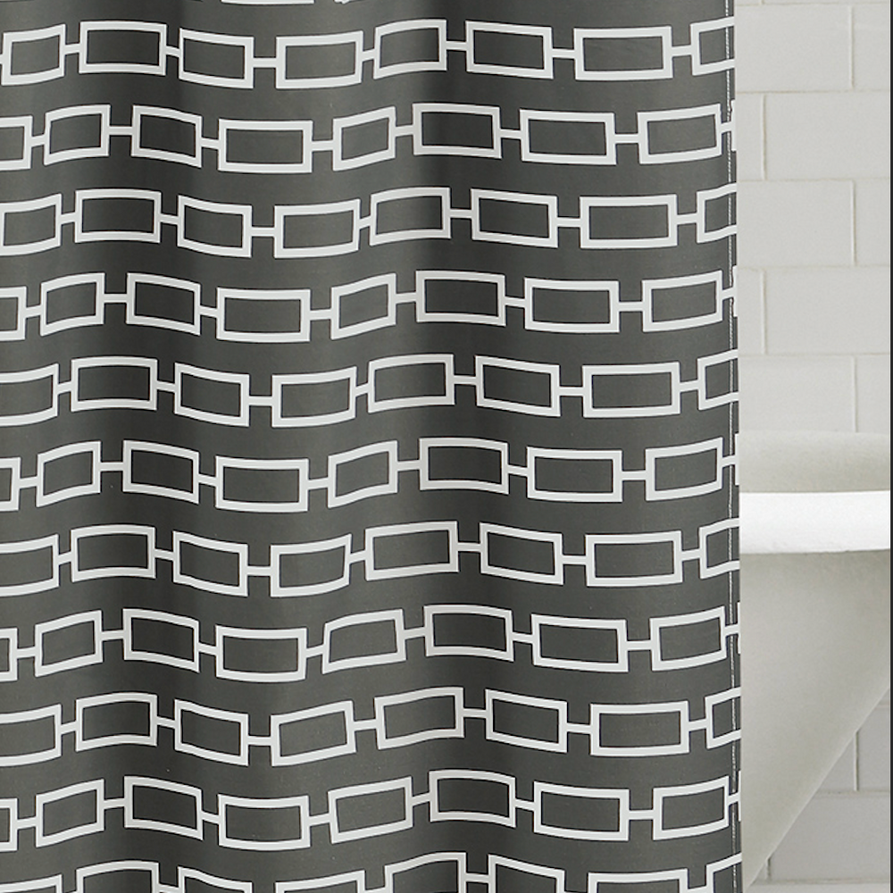 Refresh your bathroom with the bold, modern style of our Links Shower Curtain. Featuring a crisp, interlocking chain design in rich dark teal, it’s the perfect blend of visual impact and everyday practicality